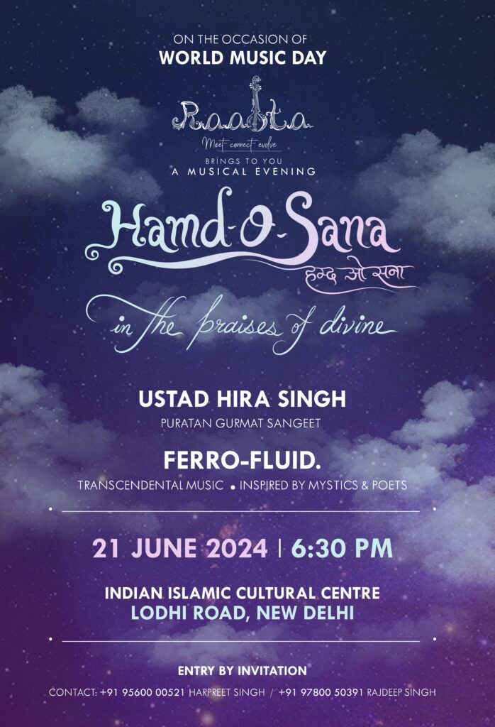 On the occasion of World Music Day, ‘Rabata’ is making a humble effort to create such an occasion, where your soul can get its nourishment. Taking inspiration from the Sufis, born on the soil of Punjab, Raabta brings to you ‘HAMD O SANA’ , a variety of soulful music. From the likes of traditional raags to the modern contemporary, some selected music forms will be presented on the same stage.